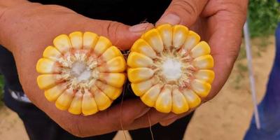 北疆春播中熟玉米区生育期119.4天,比对照早1.4天;河北夏播区生育期100天左右。幼苗叶鞘紫色,尖端圆形,叶片深绿色。株形半紧凑,总叶片数19片,株高269厘米,穗位109厘米;河北夏播区株高227厘米,穗位76厘米;雄穗主轴与分枝角度中,一级分枝3-5个,最高位侧枝以上的主轴长30厘米,花药紫色,颖壳紫色,花丝绿色,果穗筒型,穗轴粉红色,穗长18.4厘米,穗行数16.0行,行粒数39.9粒,籽粒黄色,粒型马齿型,百粒重33.3克。早发性好,抗倒伏,脱水快,适合机械化收获。 产量水平